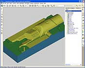 可以根据基本边界数据应用2-1/2轴粗加工模式,不过2-1/2轴粗加工也可以充分利用现有的几何实体。提供的2-1/2轴粗加工模式包括锯齿形、偏置、插铣加工、摆线等。